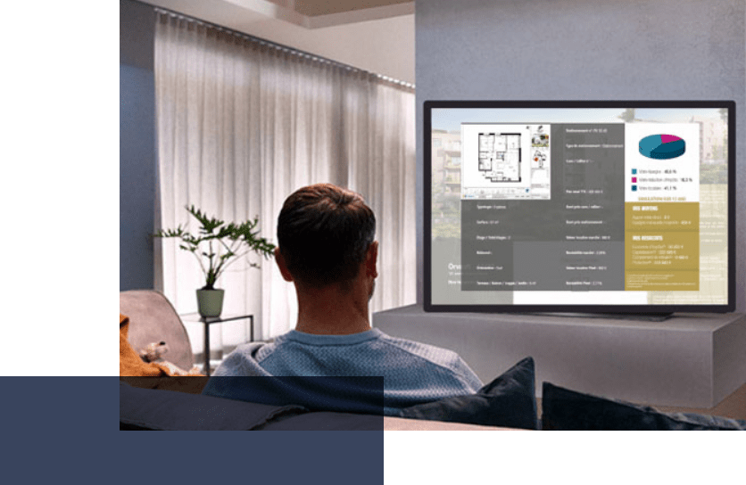 Véritable Meeting-Room personnalisée et 100% digitale, l’interface autonome devient le support des échanges entre le vendeur et le prospect en tant qu’outil d’aide à la vente et de présentation à distance : audio, visio, présentation commerciale des programmes et des lots…